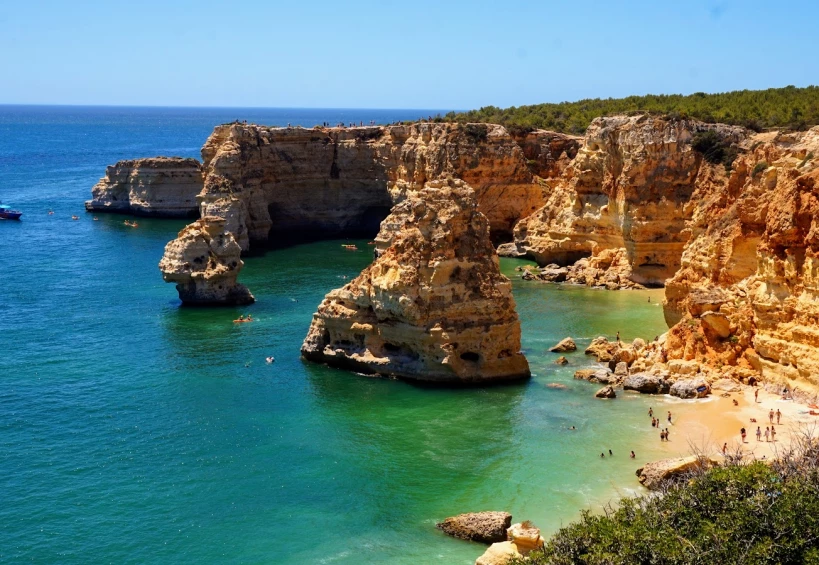 Marinha Beach boasts a golden stretch of sand, framed by wind-sculpted cliffs and impossibly blue water, making it one of the Algarve’s best beaches. There’s plenty of room on the sand and while it might get crowded during the summer, you can still find your own little spot of paradise here.